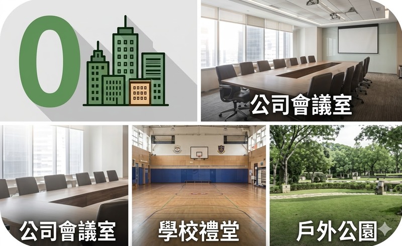 無論公司會議室、禮堂、社區中庭,只要有一塊平地就能搭建。